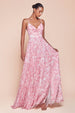 This A-line dress features a flattering V-neckline, thin straps, and a gathered waistline, crafted from soft satin in a delicate floral print. The flowy skirt and fitted crisscross open back create an effortlessly elegant silhouette. Ideal for bridesmaids, wedding guests, and formal events, this dress brings charm and sophistication to any occasion.
