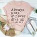 Introducing Always Pray & Never Give Up T-Shirt, your eco-friendly fashion statement! Crafted in the USA with love and care, this digitally printed tee offers a unique blend of style and sustainability. Embrace the allure with: