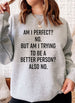Am I Perfect Sweat Shirt presents a sweatshirt that exudes elegance and style. Made in the USA with love and dedication, this sweatshirt features digitally printed graphics that are bound to impress. Crafted from 100% ring-spun cotton, it offers a luxurious feel and a comfortable fit. Whether you're a trendsetting woman or a fashion-forward mom, this sweatshirt is the perfect addition to your wardrobe.