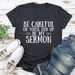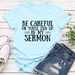 Introducing Be Careful Or You'll End Up In My Sermon T-Shirt - Explore the mesmerizing beauty of this USA-made digitally printed tee, featuring captivating designs. Crafted with love from 100% soft cotton for a comfortable and distinctive look. Express your style with this tee.