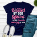 Introducing Blessed By God Spoiled By My Husband T-Shirt - Immerse yourself in the beauty of this USA-made digitally printed tee, featuring captivating designs. Made with 100% soft and breathable cotton for an enchanting and exclusive look. Embrace the adorability of this tee.