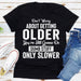 Don't Worry About Getting Older T-Shirt - Dive into comfort and style with this digitally printed tee, crafted with love in the USA. Made from 100% soft and ring-spun cotton, it offers a cool and unique appearance. Express your individuality and captivate with this addorable tee.