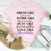 Introducing Dress Like Carrie Work Like Miranda Play Like Samantha T-Shirt - Embark on a journey with this digitally printed tee, exclusively made and printed in the USA. Crafted with precision from 100% soft ring-spun cotton, it promises a comfortable and unparalleled experience. Elevate your fashion with this tee.