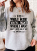 Experience the pinnacle of comfort and fashion with our exclusive I Do What I Want When I Want Where I Want Sweat Shirt digitally printed sweatshirt. Proudly crafted in the USA with premium cotton fleece, this sweatshirt guarantees warmth and coziness for a delightful experience. The captivating and artistic designs are skillfully printed, adding a modern and trendy touch to your ensemble. Unleash your individuality and unique taste with the eye-catching graphics that set you apart from the crowd. Whether you're on a casual outing or relaxing at home, our I Do What I Want When I Want Where I Want Sweat Shirt sweatshirt is the perfect fashion statement for every occasion.