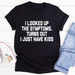 Introducing I Looked Up My Symptoms Turns Out I Just Have Kids T-Shirt - Unleash your creativity with this USA-made digitally printed tee, featuring captivating designs. Made with 100% soft...