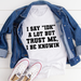 Introducing I Say "IDK" A Lot T-Shirt - Explore the allure of this USA-made digitally printed tee, featuring mesmerizing designs. Crafted with 100% premium cotton for a cozy and extraordinary look. Express your style with this tee.