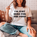 I'm Just Here For The Food T-Shirt - Unleash your charm with this digitally printed tee, expertly crafted in the USA. Made from 100% soft and ring-spun cotton, it ensures...