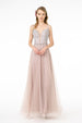Jewel Embellished Bodice Mesh A-Line Dress w/ Strap Back-0