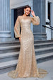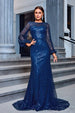 Indulge in the luxurious and exclusive JM201. This navy masterpiece boasts a siren line silhouette and dazzling glitters for a show-stopping look. With long sleeves, a high neck, and an...