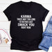 "Experience the thrill of this digitally printed tee, exclusively made and printed in the USA. Crafted with precision from 100% soft ring-spun cotton, it promises a comfortable and distinctive experience. Express your style with this Karma Takes Way Too Long I'd Rather Just Smack You Right Now T-Shirt."