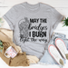 Introducing May The Bridges I Burn Light The Way T-Shirt - Embrace the splendor of this USA-made digitally printed tee, designed to captivate. Made with 100% soft and breathable cotton for a luxurious and unique look. Express your style with this tee.