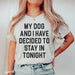 My Dog And I Have Decided To Stay In Tonight T-Shirt - Discover the allure of this digitally printed tee, exclusively made and printed in the USA. Crafted from 100%...