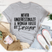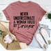 Introducing Never Underestimate A Woman Fueled By Prayer T-Shirt - Immerse yourself in the magic of this USA-made digitally printed tee, designed to captivate. Made with 100% soft and breathable cotton for a comfortable and one-of-a-kind look. Embrace the adorability of this tee.