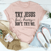 Try Jesus But Honey Don't Try Me T-Shirt - Unleash your charm with this digitally printed tee, expertly crafted in the USA. Made from 100% soft and ring-spun cotton, it ensures an amazing fit and captivating design. Embrace the artistry and make a statement with this tee.