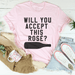 "Immerse yourself in the joy of this digitally printed tee, meticulously made and printed in the USA. Fabricated from 100% soft and ring-spun cotton, it ensures a cozy and exclusive touch. Embrace the sophistication and enhance your style with this Will You Accept This Rose T-Shirt."