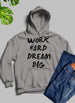 Elevate your fashion game with our WORK HARD DREAM BIG Hoodie digitally printed hoodie, the epitome of modern chic. Designed and crafted in the USA with meticulous attention to detail, this hoodie features captivating patterns that stand out from the crowd. Embrace your happy girl spirit and wear it with pride, or gift it to a special mom who deserves nothing but the best.