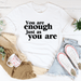 "Immerse yourself in the joy of this digitally printed tee, meticulously made and printed in the USA. Fabricated from 100% soft and ring-spun cotton, it ensures a cozy and exclusive touch. Embrace the sophistication and enhance your style with this You Are Enough Just As You Are T-Shirt."