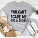 Introducing You Can't Scare Me I'm A Mom T-Shirt - Embrace the joy of this USA-made digitally printed tee, designed to inspire. Crafted with love from 100% soft ring-spun cotton for a comfortable and distinctive look. Elevate your fashion with this tee.